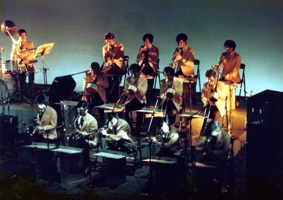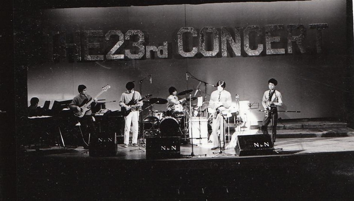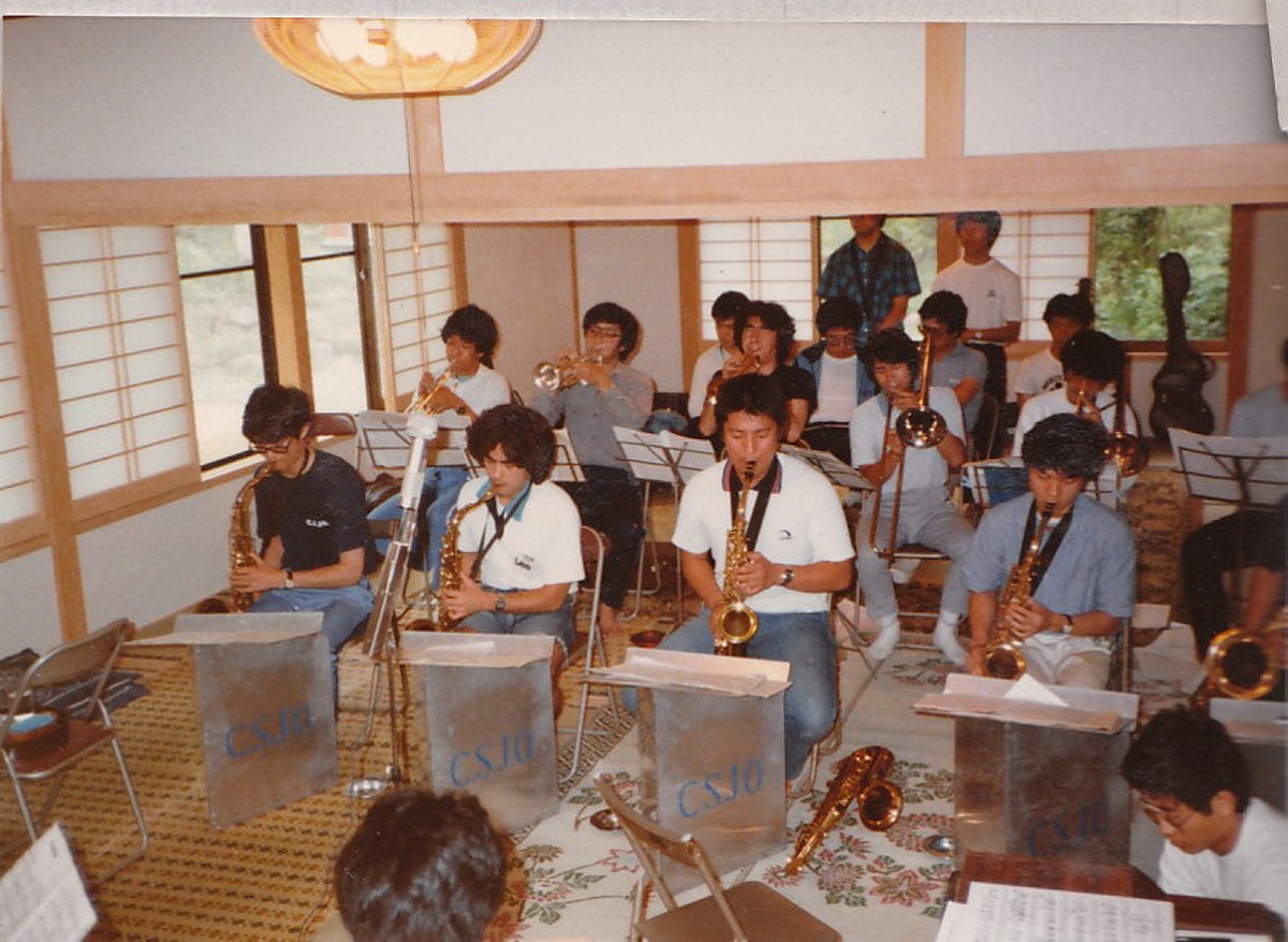 創設 | 上遠野氏を中心に、Gt.Pf.Cl.Cb.Drs.五名の学生により音楽部の前身「JAZZ同好会」が創設 当時職員であった野崎充氏が部長(現在で言う顧問的立場)を勤め、以後長年にわたって軽音楽部及びCSJOを支える |