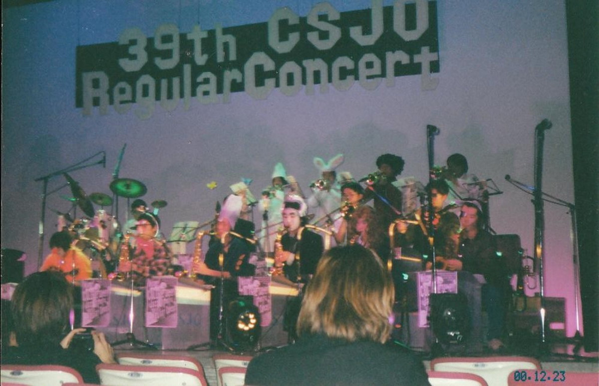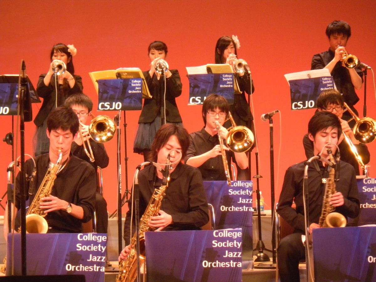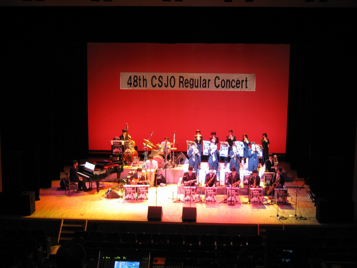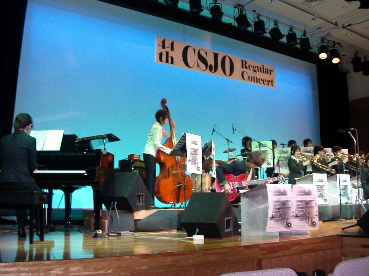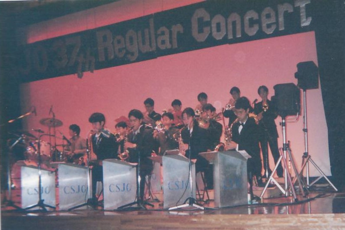 10 | 8 | 2 | 工学祭 College Society Jazz Orchestra 初舞台で演奏 ![]() CSJOとしての初舞台 工学祭で演奏「マウンテン ランブラーズ」 ![]() 屋外での歌モノ演奏 第7回定期演奏会 ![]() 都市センターホールにて この年から定演もコンボ3組とビッグバンドでのプログラム構成に |