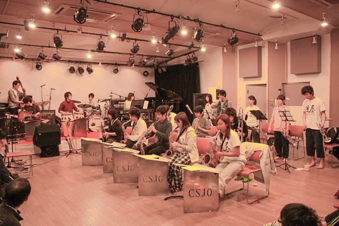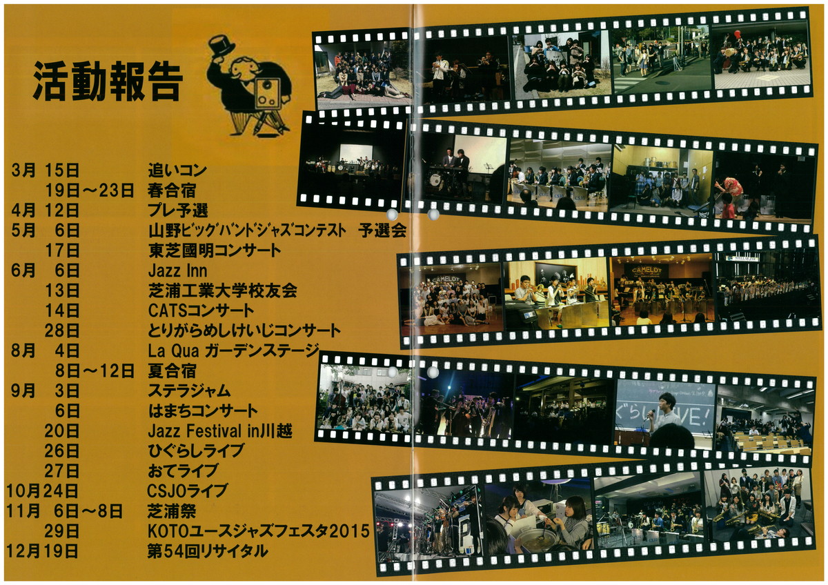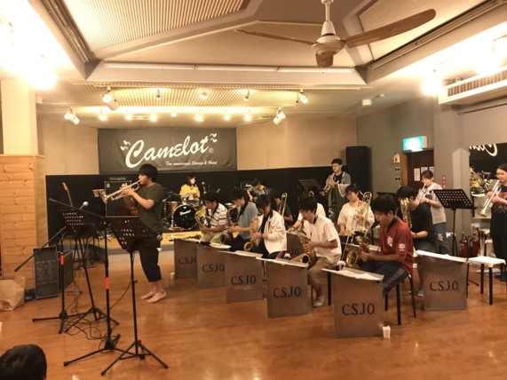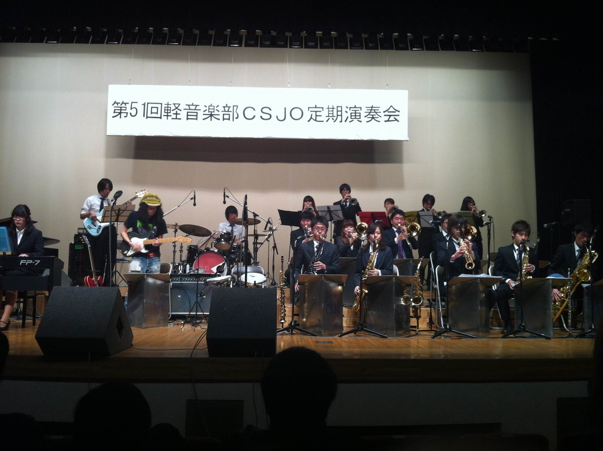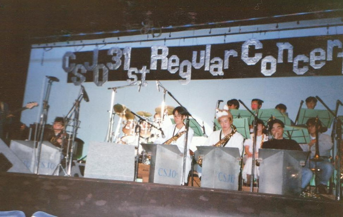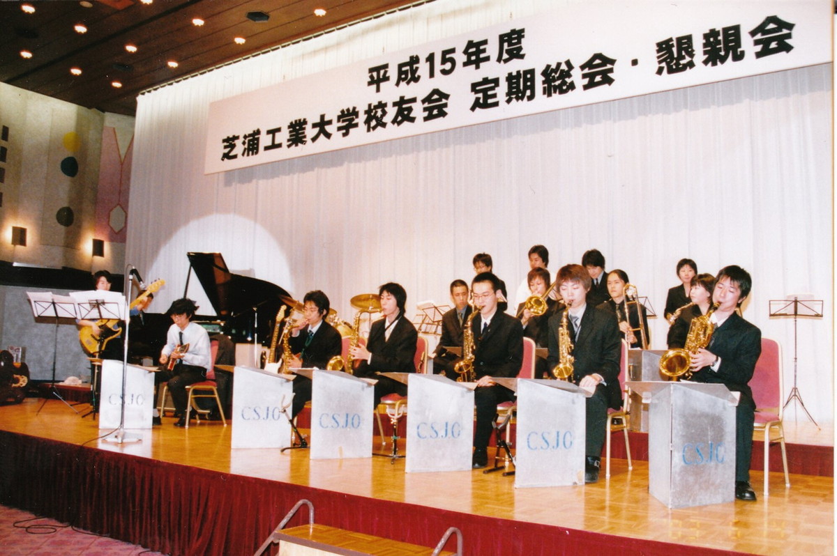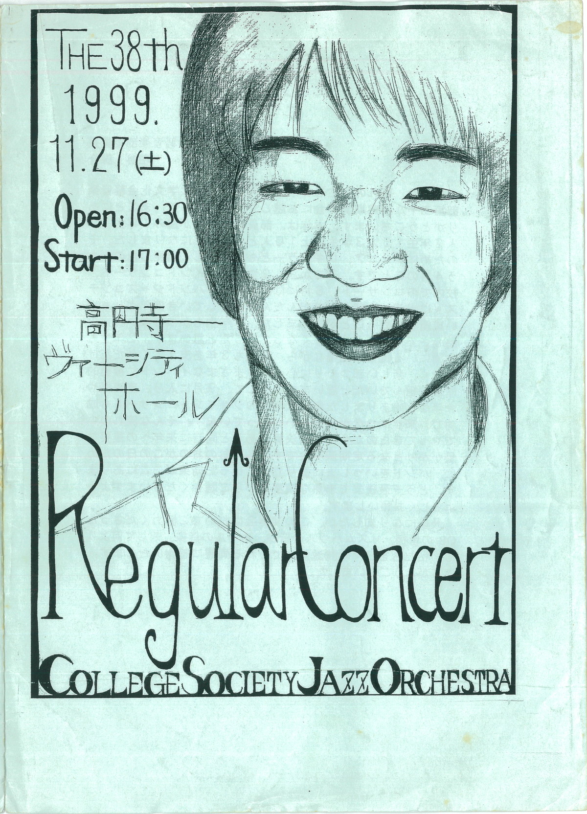 10 | 8 | 2 | 工学祭 College Society Jazz Orchestra 初舞台で演奏 ![]() CSJOとしての初舞台 工学祭で演奏「マウンテン ランブラーズ」 ![]() 屋外での歌モノ演奏 第7回定期演奏会 ![]() 都市センターホールにて この年から定演もコンボ3組とビッグバンドでのプログラム構成に |