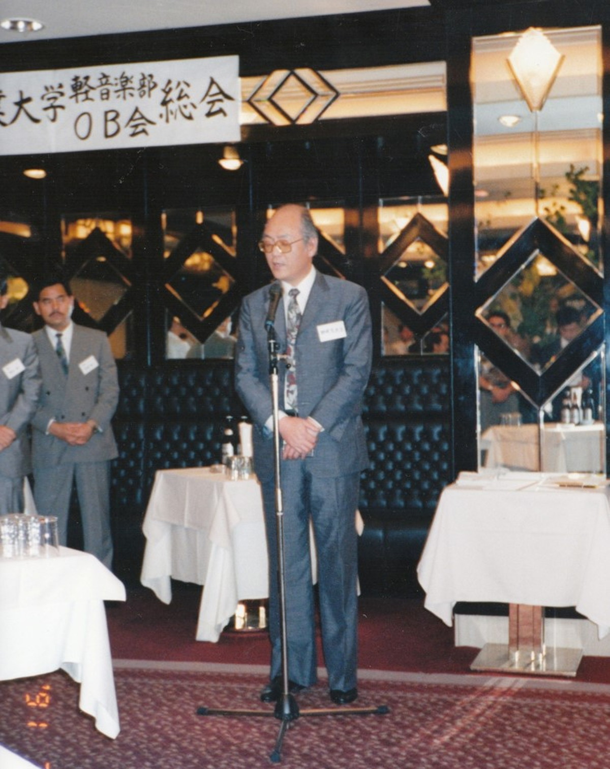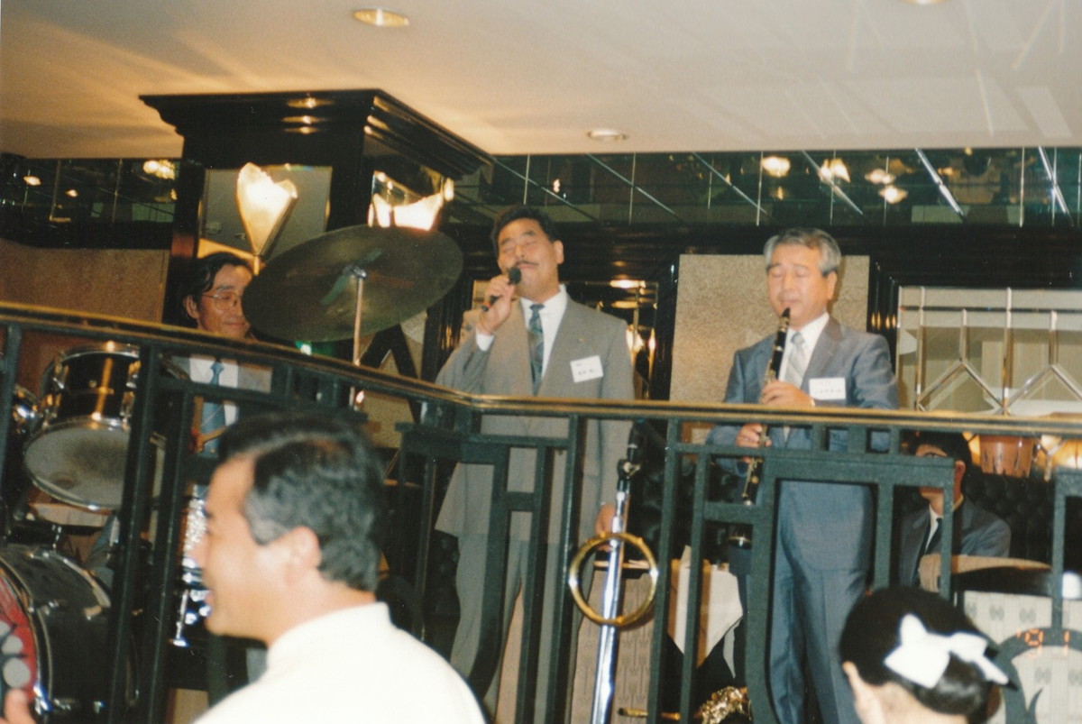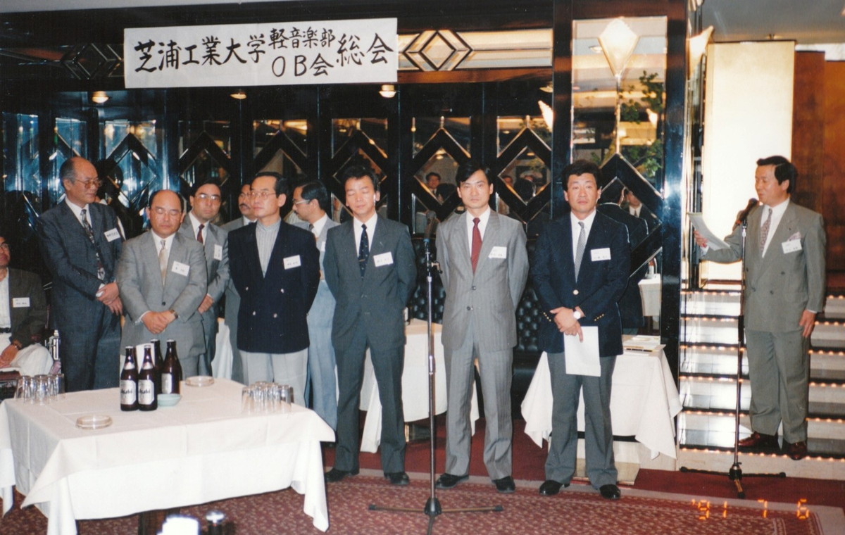 33 | 31 | 25 | 第30回定期演奏会 「Let’s Drive Together ‘91」 ![]() 創設33周年 OB会活動再開と共に現役OB間の交流が増えていく 夏合宿 ![]() 河口湖民宿「富士湖」にて 第2回OB総会・懇親会 原光利氏(S40卒)がOB会会長となり、改めて会則を定めOB会の活動を再開 ![]() 品川の東京ホテルにて ![]() 野崎充部長(現在で言う顧問的立場)のご挨拶 ![]() 懇親会にてOBバンドによる演奏 軽音楽部創始者上遠野氏(Cl.)の演奏 |