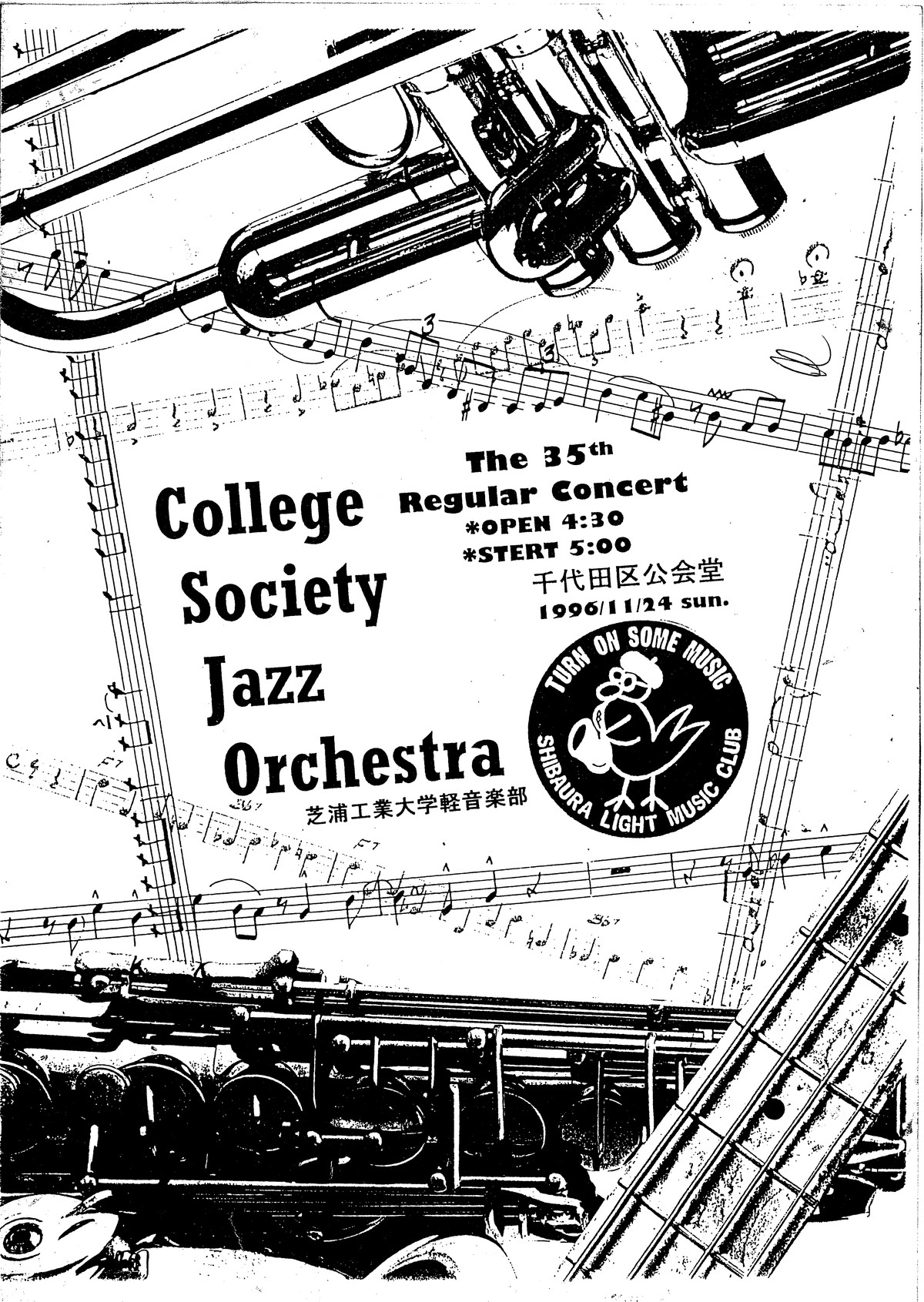 38 | 36 | 30 | 第35回定期演奏会 ![]() 千代田区公会堂にて ![]() パンフレット表紙 演奏曲:Phill not Bill/Great Escape/Love For Sale/Good News/Left Hand Funk など |