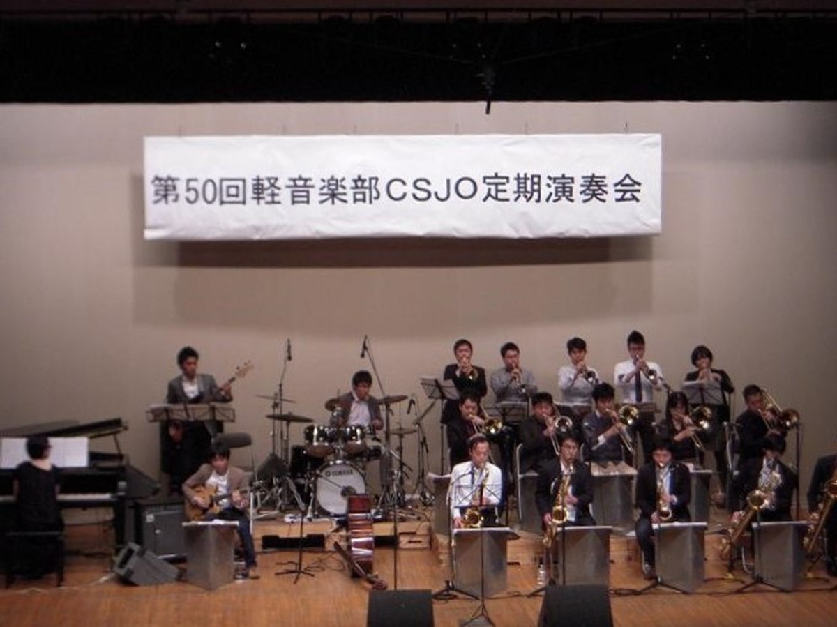 昭和25年(1959年)に同好会創設、昭和36年(1961年)に軽音楽部創部、昭和42年(1967年)CSJO創設しました。 過去の写真とともに、歴史をご紹介します。