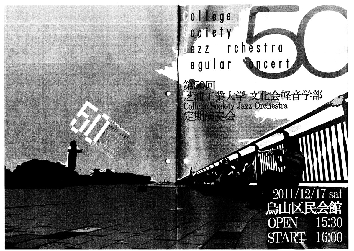 53 | 51 | 45 | 第50回定期演奏会 ![]() 烏山区民会館にて ![]() パンフレット表紙 演奏曲:5/4Gateway/Alone/Too Shy Too Say/The Devil Made Me Write This Piece など 第42回山野ビッグバンドジャズコンテスト出場夏合宿 ![]() ![]() ゆうげん荘にて ![]() OBOGバンドによる東日本大震災被災者慰問コンサート ![]() 会津高原の芝浦工大の研修施設にて 当時は大学が宿泊施設を開放し被災者を受け入れていた |