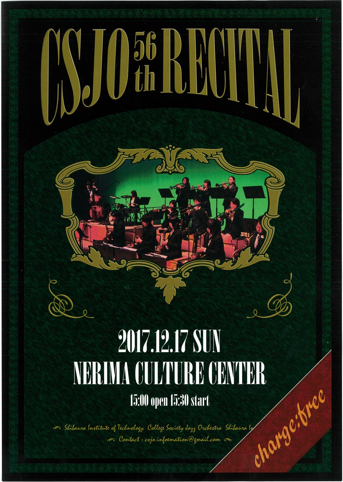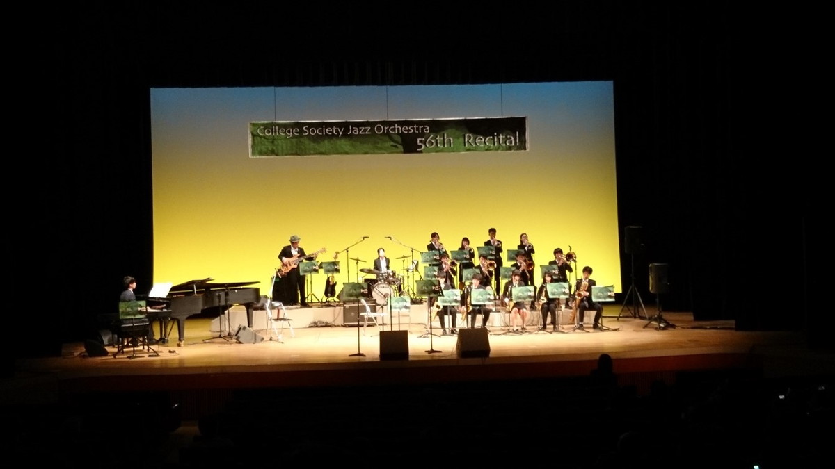 54 | 52 | 46 | 第51回定期演奏会 ![]() 烏山区民会館にて 一年間深井勇太氏(Gt.)を学外から招き、Regularバンドとして活動 ![]() 演奏曲プログラム 演奏曲:Afro Blue/Quiet Friday/Nano/Mercy,Mercy,Mercy/Whiplash など 現役vsOBOG対バン ![]() 新宿ライブハウスSOME DAYにて 春合宿 ![]() 夏合宿 ![]() ![]() キャメロットにて |